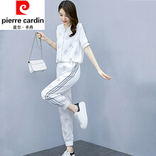 皮尔卡丹欧洲站冰丝运动休闲裤套装女2021夏天宽松洋气减龄薄款卫衣两件套套装优良女装品味时尚 白色 M