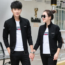 凡古拉 情侣套装韩版显瘦开衫卫衣女三件套大码休闲套装男跑步运动服时尚长袖外套女 黑色长袖三件套 女XL/110-120斤