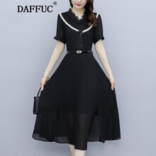 DAFFUC香港轻奢潮牌夏季女装年新款潮夏天法式复古连衣裙子收腰显瘦气质雪纺长裙 黑色 XL