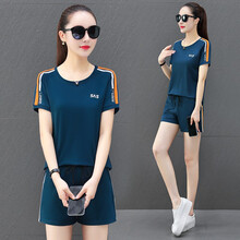 辰杭 品牌运动套装女夏2021新款薄款短袖短裤运动服休闲套装舒适透气健身跑步运动衣 孔雀蓝 女L建议95-110斤