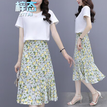 梓态 连衣裙套装2021年夏季女装新款超仙森系棉质绣花短袖T恤星空印花中长款网纱裙沙滩裙 白色 L (建议105-115斤左右)