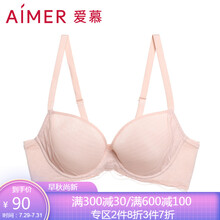 爱慕文胸女式内衣细雨轻风U型美背性感蕾丝花边4/4薄款大胸聚拢全罩杯三明治文胸AM111971 杏粉色 D80