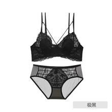 仙女六六 裸感亲肤性感蕾丝无钢圈少女文胸超薄微透美背内衣套装 极黑 80AB