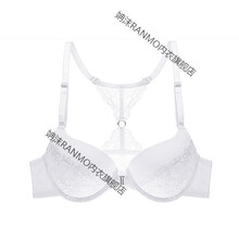 新品前扣性感美背内衣有钢圈大码文胸套装小胸聚拢蕾丝胸罩 白色 75B