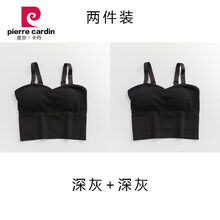 皮尔卡丹旗舰夏季美背打底内衣女无钢圈运动文胸聚拢裹胸式抹胸吊带背心小胸罩 深灰+深灰 均码