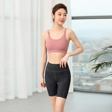 麦欧驰(MAIOUCHI )瑜伽服女套装夏季新款美背文胸蜜桃臀牛仔短裤两件套跑步运动套装 裸粉文胸-黑灰短裤 L