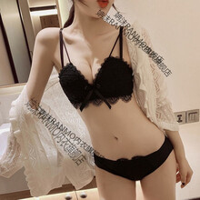 新年红色内衣女小胸聚拢胸罩无钢圈美背本命年文胸内裤套装性感 黑色【套装】 38/85 AB通杯