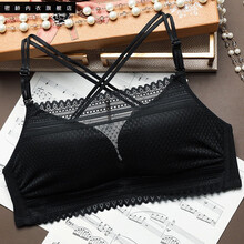 蕾丝防走关抹胸内衣雷丝内衣胸罩美背抹胸式内衣女舒适性感交叉蕾丝网纱裹胸防走光无钢圈聚拢文胸 黑色 32/70(AB通杯)