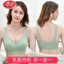 【七夕情人节礼物】浪莎文胸女新品泰国乳胶内衣女无钢圈小胸聚拢胸罩蕾丝美背显小运动文胸薄款官方旗舰品牌 黑色+绿色 均码(75-150斤)