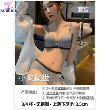 KUBRICK夏季新品蕾丝文胸女无痕内衣女小胸聚拢平胸专用加厚款胸罩无钢圈美背调整型文胸套装舒适大码 蓝色【套装】 75/34B