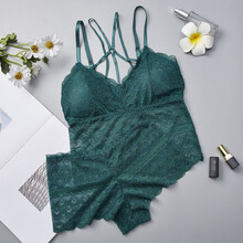 森迪宾套装吊带背心女裹胸抹胸内衣性感蕾丝情趣打底文胸带三角杯垫美背 绿色 均码