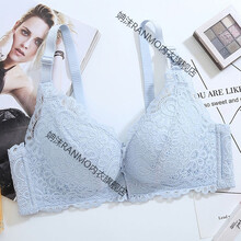 内衣女无钢圈小胸聚拢前扣文胸套装夏季美背蕾丝性感收副乳胸罩 浅蓝色 32/70AB