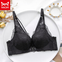 猫人前扣式文胸聚拢小胸无钢圈夏季薄款胸罩前开扣性感蕾丝美背内衣女 黑色 36/80A
