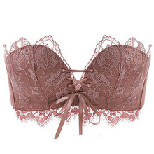 挤沟神器蕾丝内衣女无钢圈聚拢无肩带防滑小胸隐形美背文胸罩套装 橘色(单件) 85=38(AB通用)
