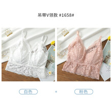 北极绒(Bejirog)裹胸打底衫内搭蕾丝美背吊带文胸一体网红防走光背心抹胸内衣 1658-白色+粉色【吊带V领款】 均码(适合80-130斤)