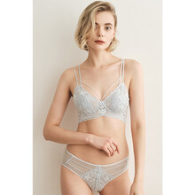 维密文文胸罩内衣套装维多利亚大胸显小内衣女薄款法式无钢圈收副乳性感三角杯蕾丝美背文胸套装 黑色套装 32/70(适合ABC 配套M码内裤)