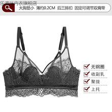 女生内衣套装夏季美背大胸显小内衣女士套装bra无钢圈薄款透气聚拢文胸罩 黑色文胸 42/92C