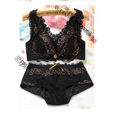 【厚薄可选】聚拢性感收副乳上托蕾丝美背调整型无钢圈内衣女文胸 黑色套装 40/90A 厚杯