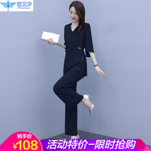 欧贝汐时尚阔套装女夏2021新款夏季雪纺春气质职业休闲两件套套装裙 藏青色 M