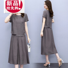 适合20-30岁35少妇小个子显瘦穿的棉麻连衣裙女夏2021年新款妈妈装气质裙子两休闲时尚套装 灰色 M