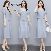 EQTCONV潮牌原创女装纯色短袖套装裙2021年夏季新款时尚休闲百搭洋气减龄方领连衣裙 浅蓝 M