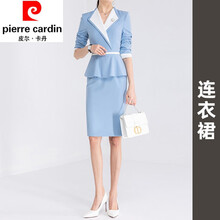 皮尔卡丹 职业装时尚假两件连衣裙收腰显瘦名媛套装美容院工作服女气质品牌女装 连衣裙 S