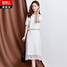 南极人轻奢高档品牌 网纱蕾丝两套装裙2021新款女夏装洋气两休闲气质裙子时尚气质时尚女装 白色 M