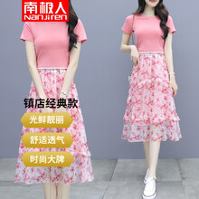 【特价】南极人品牌女装2021年夏季新款气质碎花雪纺的半身裙子两小香风时尚套装夏天凉快质量好看透 粉色 S