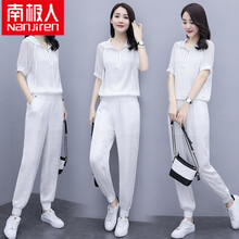 南极人轻奢高档女装 冰丝运动休闲卫衣套装女2021新款夏装减龄洋气两件套裤装时尚显瘦 白色 S