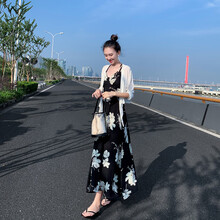 纤伊寻品牌雪纺连衣裙2021春季新款韩版收腰显瘦吊带长裙碎花时尚套装裙 图片色 XXL