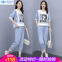 欧贝汐夏季休闲时尚牛仔套装女夏装2021新款女装气质夏天洋气两件套套装裙潮 图片色 M