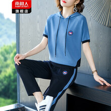 ℘南极人品牌女装℘高档 冰丝运动服套装女品牌大码女装胖mm夏季时尚休闲卫衣两件套套装潮舒适透气 蓝色 XL