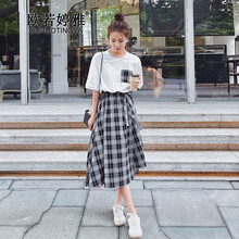 欧若婷雅 连衣裙女2021年新款格子法式初恋甜美小清新学院风韩版时尚气质中长款假两件套套装裙子女夏 图片色 S