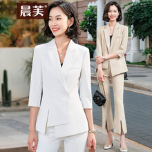 晨芙职业装女装套装时尚不规则七分袖小西装外套女气质女神范大学生面试酒店前台接待美容师主持人正装工作服 单件白色外套 XL
