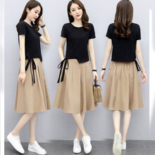 萧遇21年连衣裙女装大码春夏季新款两件套套装裙子女士小个子韩版宽松印花时尚性感a字短袖衣服中长款 图片色 M 建议95-110斤