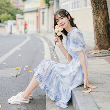 单蜜短袖连衣裙女装新品21年夏季新款韩版宽松时尚显瘦甜美减龄小个子中长款雪纺裙子女 图色 XL 建议119至128斤穿