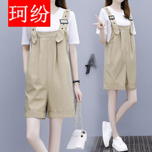 高档轻奢 21年连衣裙女装大码夏夏季新款两T恤裙子女士小个子韩版宽松印花时尚性感a字短袖衣服中长 卡其色套装 M