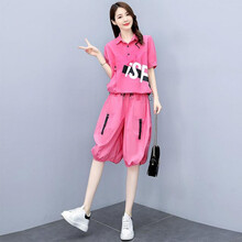 【抖音同款】速茨炸街套装新款时尚休闲网红五分阔腿灯笼裤套盈诗双女装店 粉色 M100-110斤穿
