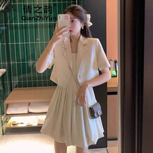 倩之韵 连衣裙西装套装女21夏季新品女装韩版时尚名媛气质职业小外套配吊带裙子两件套套装裙子女 白色外套+裙子 S