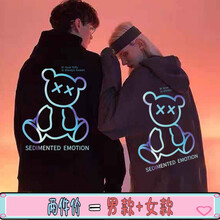 【两件装】溪希情侣装秋季新款套装反光熊薄款连帽卫衣一男一女潮流长袖外套学生班服定制 小熊男黑色+女黑色(薄款) (加绒/薄款可选)男L/女M