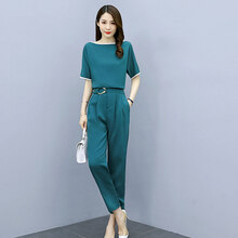 高档轻奢品牌运动休闲套装女夏2021年新款雪纺高端时尚直筒修身夏装两件套套装洋气透气显瘦女装 孔雀蓝(套装) M