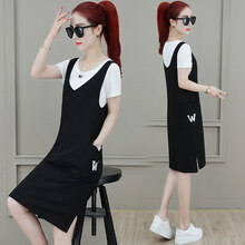 瓦瓦鸭套装连衣裙两件女夏装2021新款春秋时尚气质夏季女装背带裙子潮 白色短袖 M