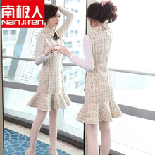 南极人轻奢品牌女装长袖连衣裙两件套套装女春秋2021新款时尚气质女神范毛呢裙子套装新品 白+米M