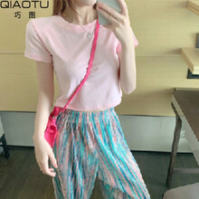 巧图 休闲裤女时尚套装2021夏季新款流行女装韩版上衣九分裤女宽松显瘦休闲套装女潮 粉色套装 请拍正确尺码或咨询在线客服