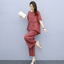 高档轻奢品牌时尚阔腿裤两件套套装女夏加大码胖mm宽松遮肚减龄显瘦薄款妈妈时髦透气女装 砖红色 L体重119-131斤