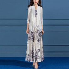 时尚套装女春夏2021新款气质雪纺衫印花吊带连衣裙洋气垂感两莲衣群子孑夏天穿的时尚气质新款 白色印花 S【建议95斤以下】