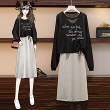 春麗珠 连衣裙女2021年女装初秋新款韩版大码胖mm遮肚防晒衫长袖吊带连衣裙时尚减龄宽松两件套套装女 图片色(套装) 大码L