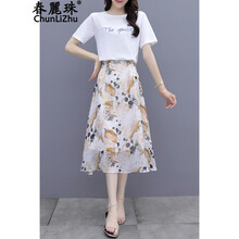 春麗珠 连衣裙女2021年女装夏季新款韩版短袖小众设计感温柔风半身裙洋气时尚显高气质两件套套装裙子女 图片色套装 S