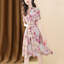 巧减女碎花连衣裙2021年新款夏季韩版时尚荷叶边印花高级感修身收腰显瘦百搭裙子女装 花色 XL