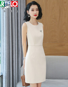 卡帝乐鳄鱼轻奢女装 职业装连衣裙2021新款正装夏款高端工作服气质套装两件西装套裙 杏色单件连衣衤君 XS